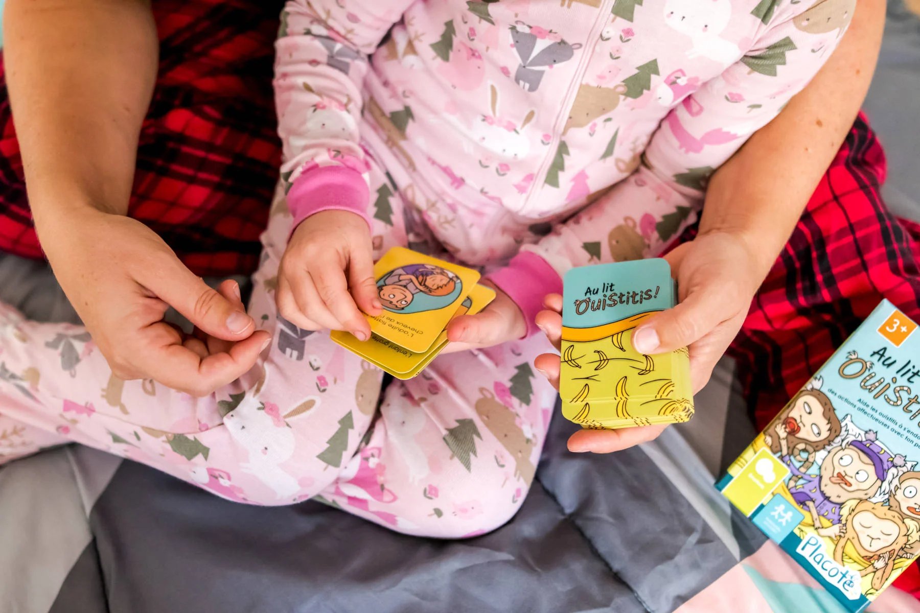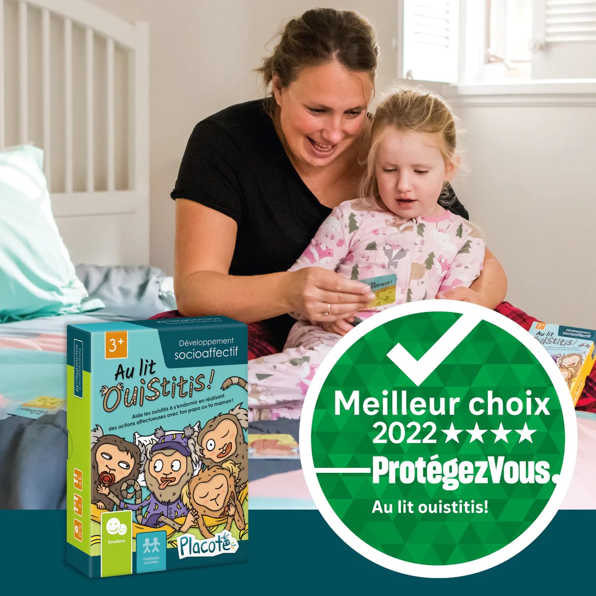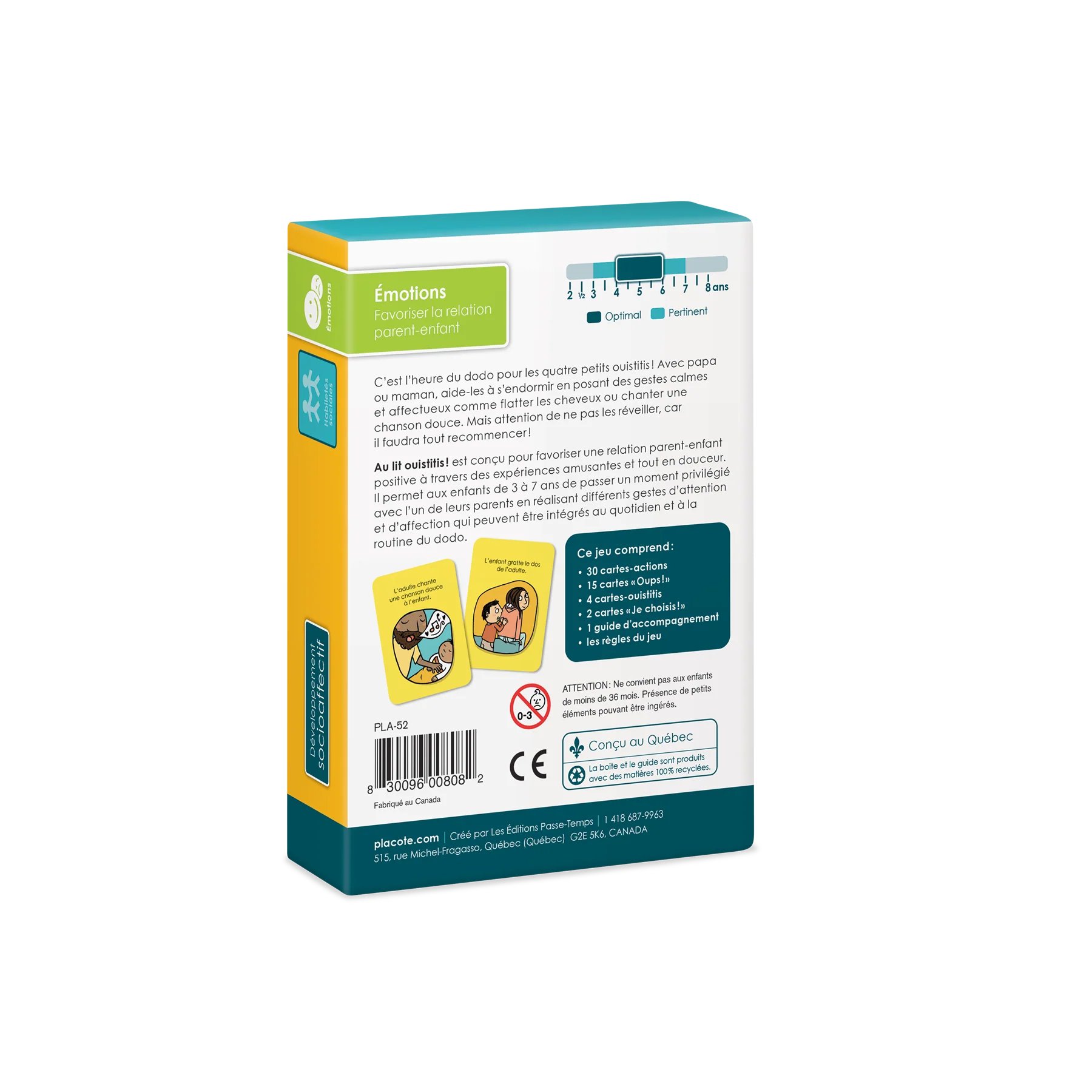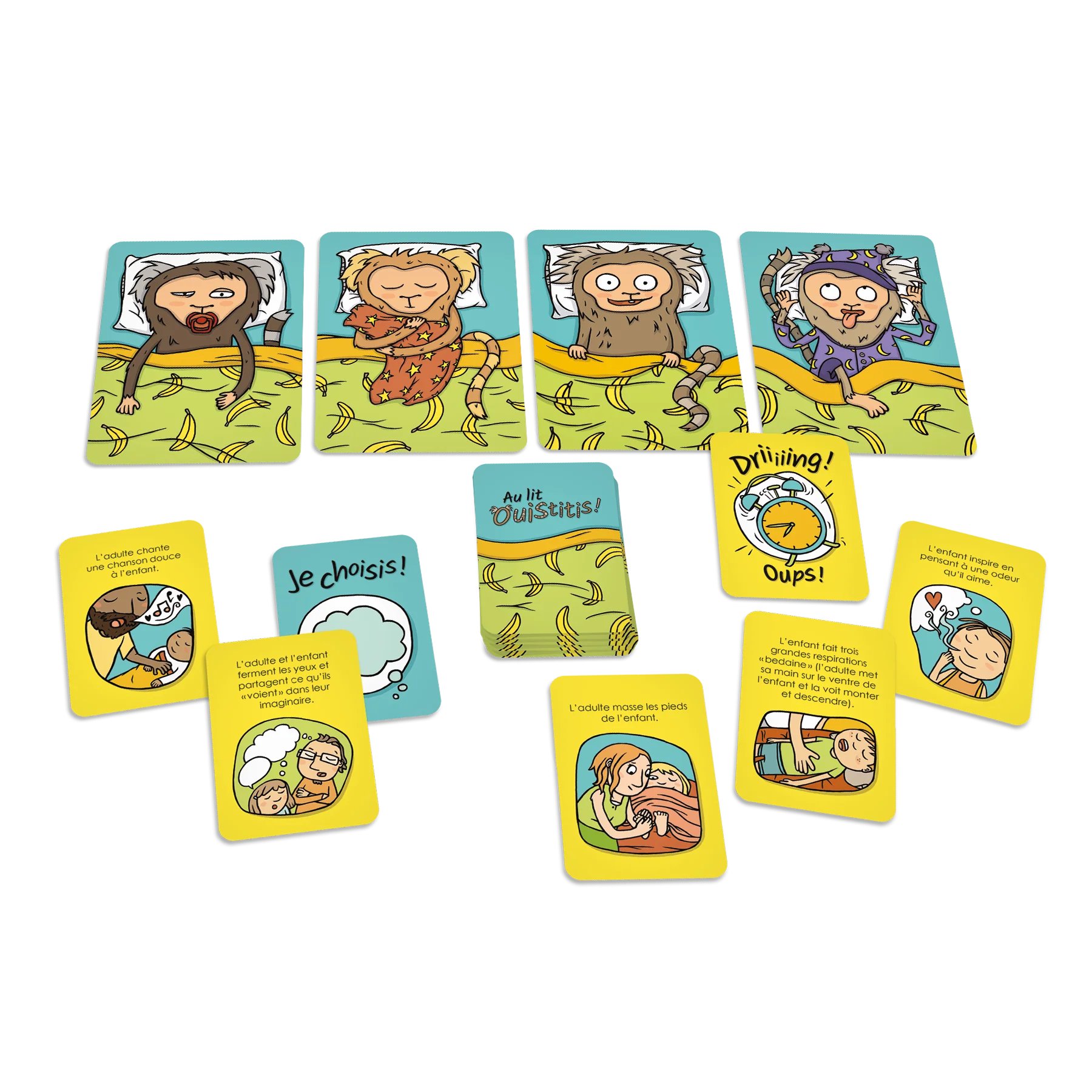 « Au lit ouistitis ! » est un jeu conçu pour favoriser une relation parent-enfant positive à travers des moments doux et apaisants avant le coucher. Le jeu s'adresse aux enfants âgés de 3 à 7 ans et encourage la coopération entre l'enfant et l'un de ses parents pour aider quatre petits ouistitis à s'endormir.