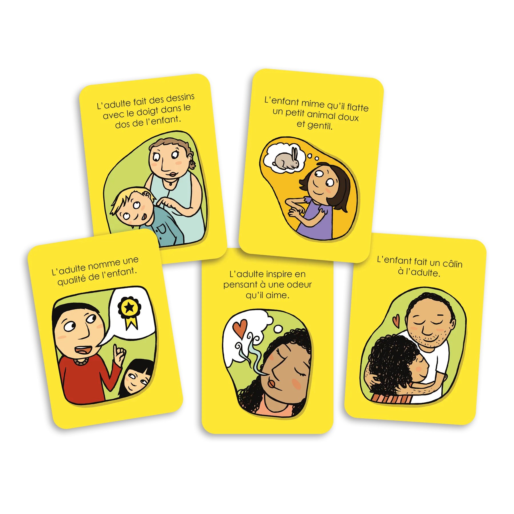 Pendant le jeu, les enfants et les parents sont invités à poser des gestes calmes et affectueux, comme flatter les cheveux ou chanter une chanson douce, pour aider les petits ouistitis à s'endormir. Cependant, il faut veiller à ne pas les réveiller, sinon il faudra recommencer. Le jeu vise à intégrer ces gestes d'attention et d'affection dans la routine du coucher, renforçant ainsi le lien entre l'enfant et son parent tout en créant une expérience positive avant le sommeil.