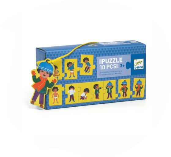L’enfant acquiert une meilleure compréhension de l’ordre des actions, tout en apprenant à s’habiller tout seul.