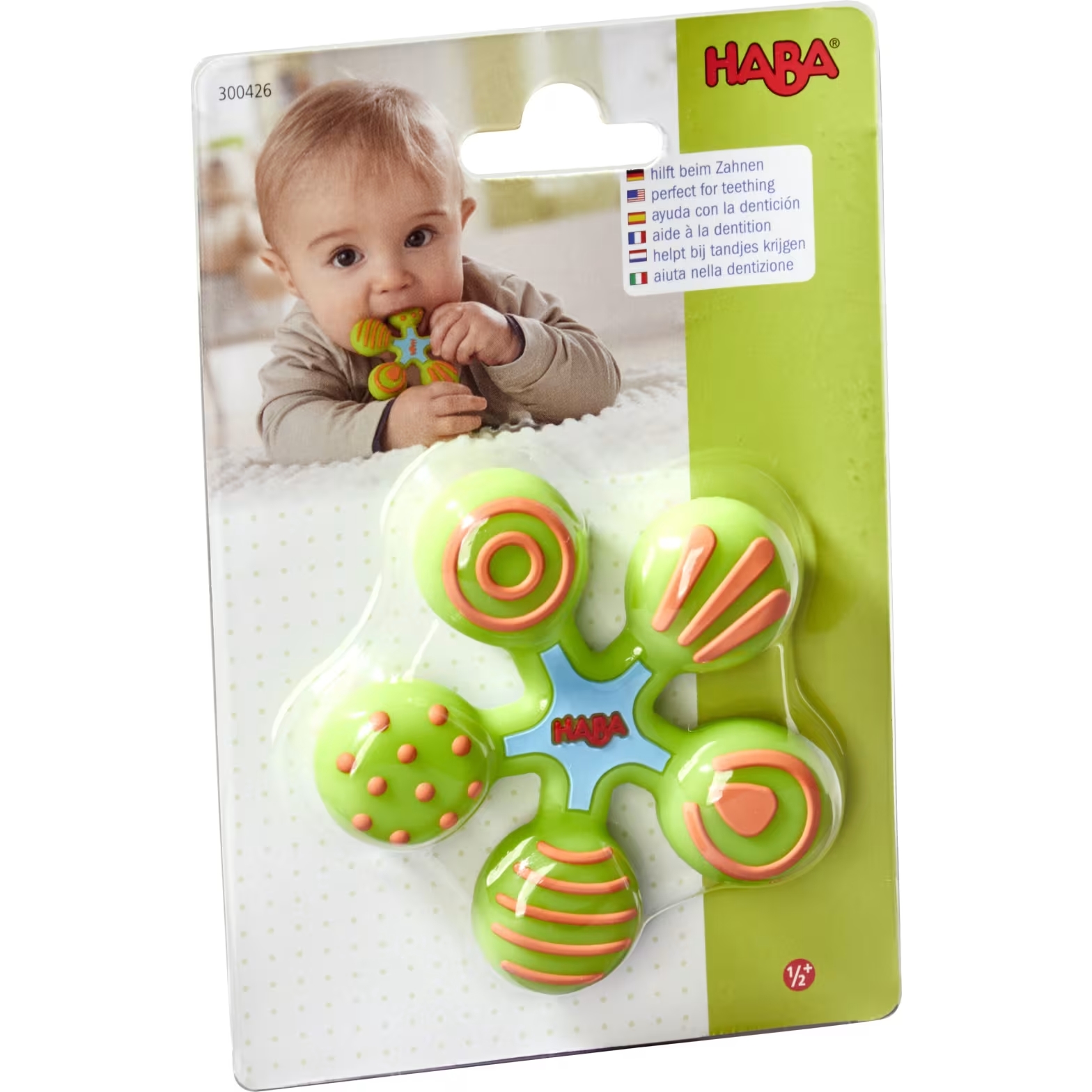 Prenez-le dans la bouche et mâchez-le avec plaisir. Le charmant hochet en silicone Étoile invite à une exploration ludique. Chacun de ses cinq bras présente une surface texturée différente : parfois couvert de petits points, parfois de fines ou larges bandes, ou encore de spirales. Mâcher les différentes textures offre ainsi beaucoup de variété. Cela détend et apaise, surtout pendant la poussée dentaire. Le hochet Étoile est donc un allié extrêmement utile pour les bébés !
