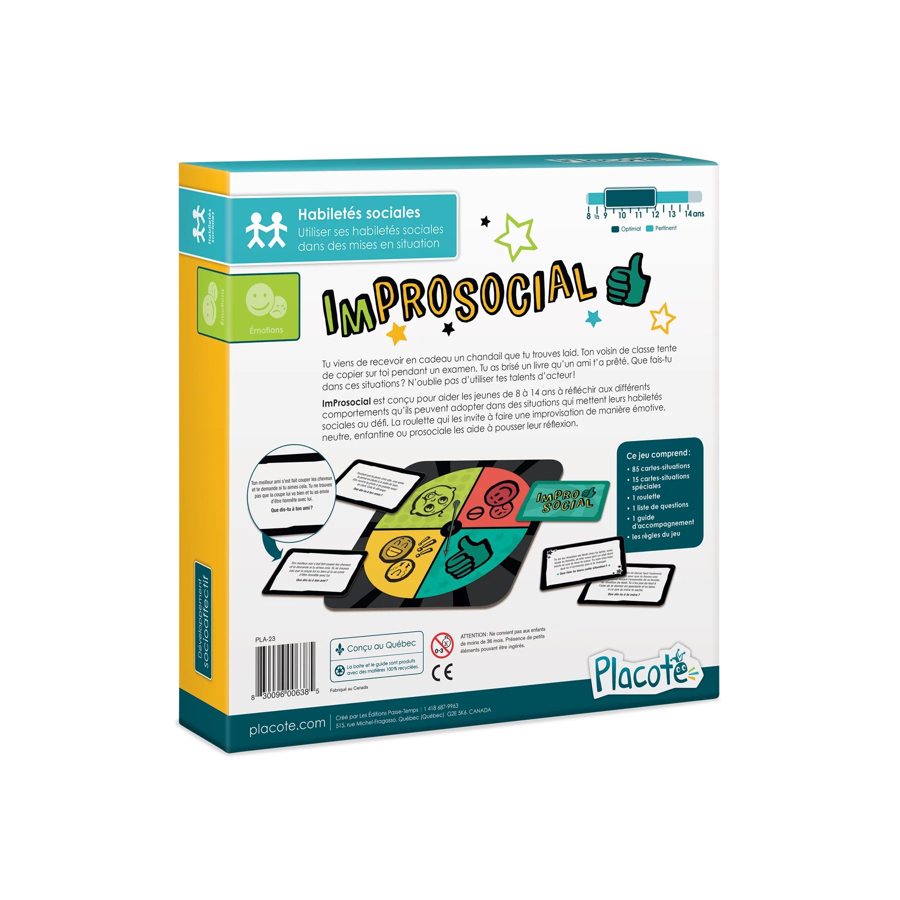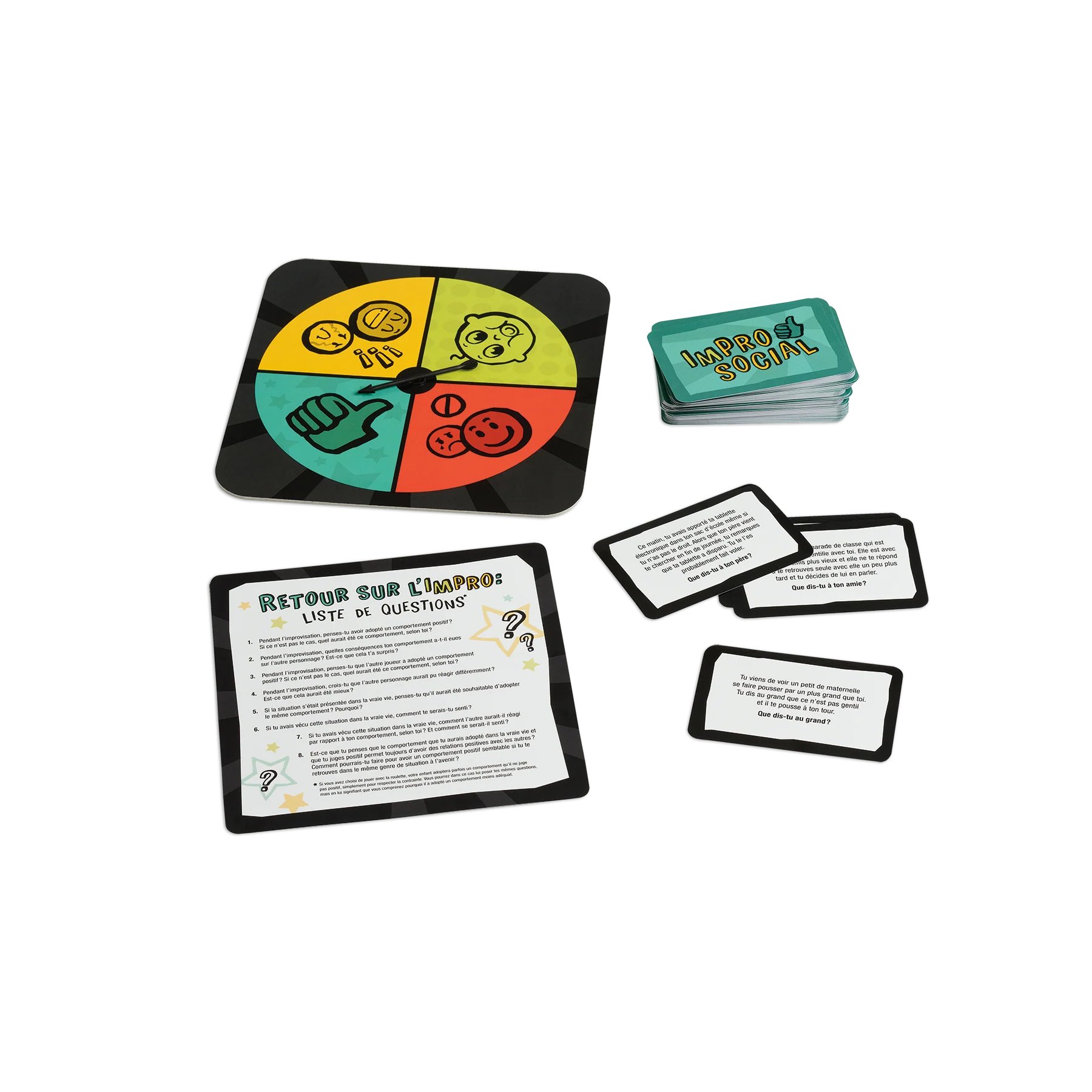 À travers une roulette qui les guide vers des improvisations émotives, neutres, enfantines ou prosociales, les jeunes sont encouragés à réfléchir aux différents comportements qu'ils peuvent adopter. Ce processus les amène à développer leur capacité à adapter leurs stratégies en fonction des nouvelles informations ou circonstances, ainsi qu'à évaluer les risques associés à leurs comportements et décisions. De plus, ImProsocial les invite à interpréter les signaux sociaux et à s'adapter à diverses situations sociales, renforçant leur capacité à prendre des décisions plus réfléchies en tenant compte des avantages à long terme. Ils apprennent également à résister à la pression des pairs et à prendre des décisions de manière indépendante, tout en développant leur aptitude à trouver des solutions et des compromis.
