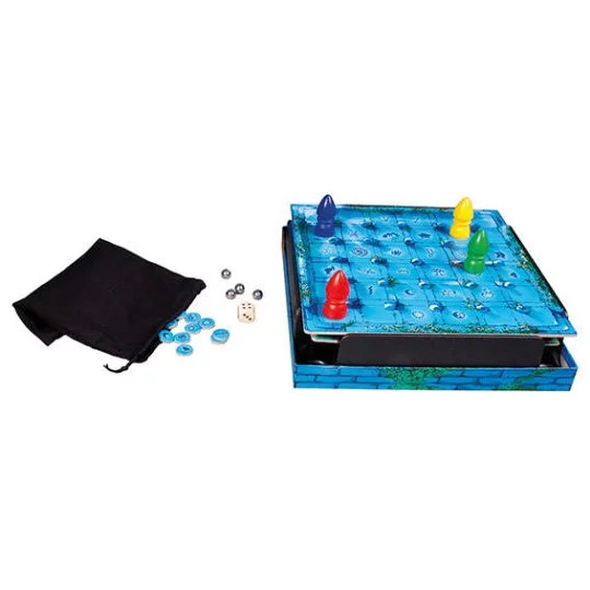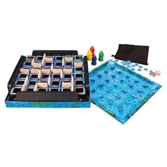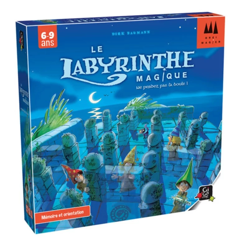 Les joueurs doivent collecter 5 objets dans le labyrinthe magique. Placez les murs du labyrinthe puis essayez de mémoriser le parcours qui est ensuite recouvert par le plateau de jeu ! Chaque joueur choisit un magicien et se place à un angle du plateau. Puis il glisse une bille métallique, sous le plateau, qui va se fixer à son pion. Le joueur lance le dé et déplace son magicien. S’il arrive sur la case où se trouve le jeton objet, il gagne cet objet et on place un nouveau jeton. Mais si un magicien se cogne contre un mur, la bille tombe et il doit alors repartir à sa case de départ. Ambiance garantie !