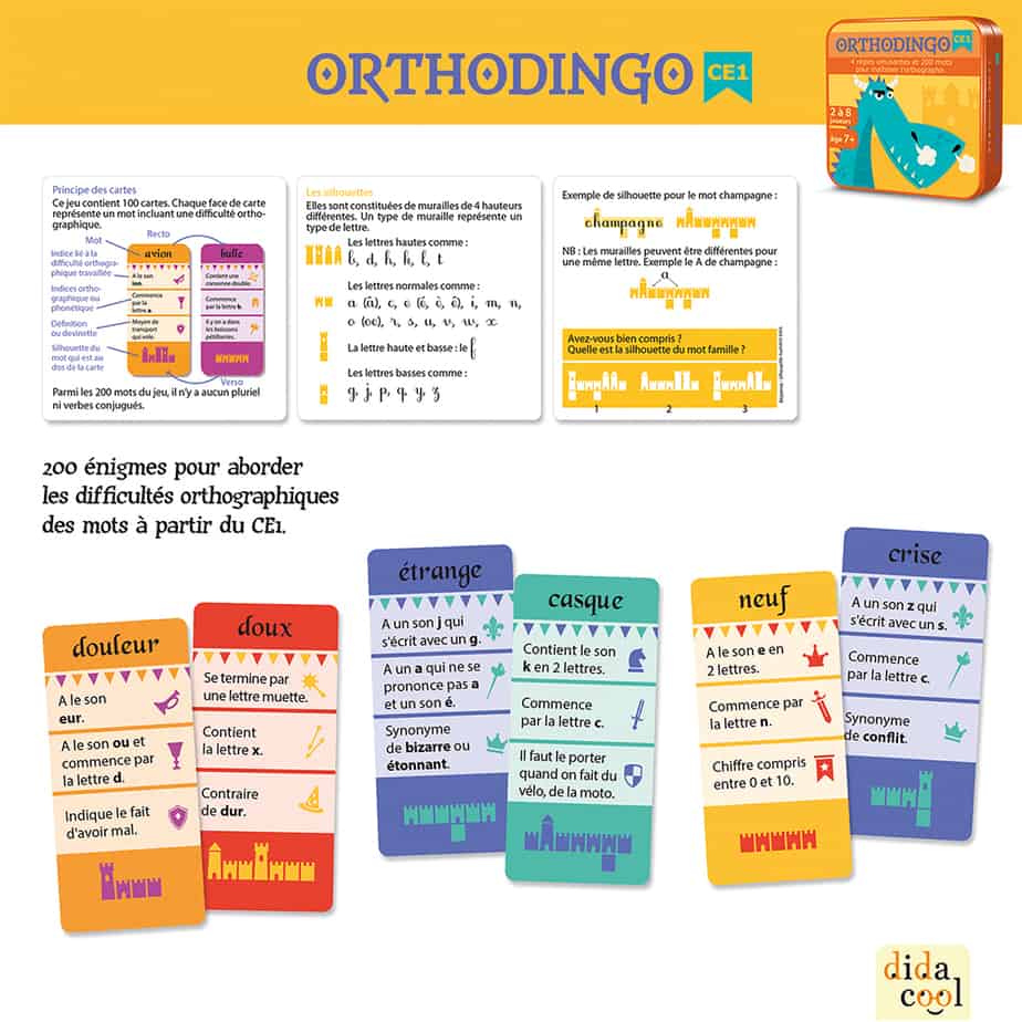OrthoDingo CE1 vous permet de travailler l’orthographe de 200 mots en primaire (CE1/CE2/CM1).
