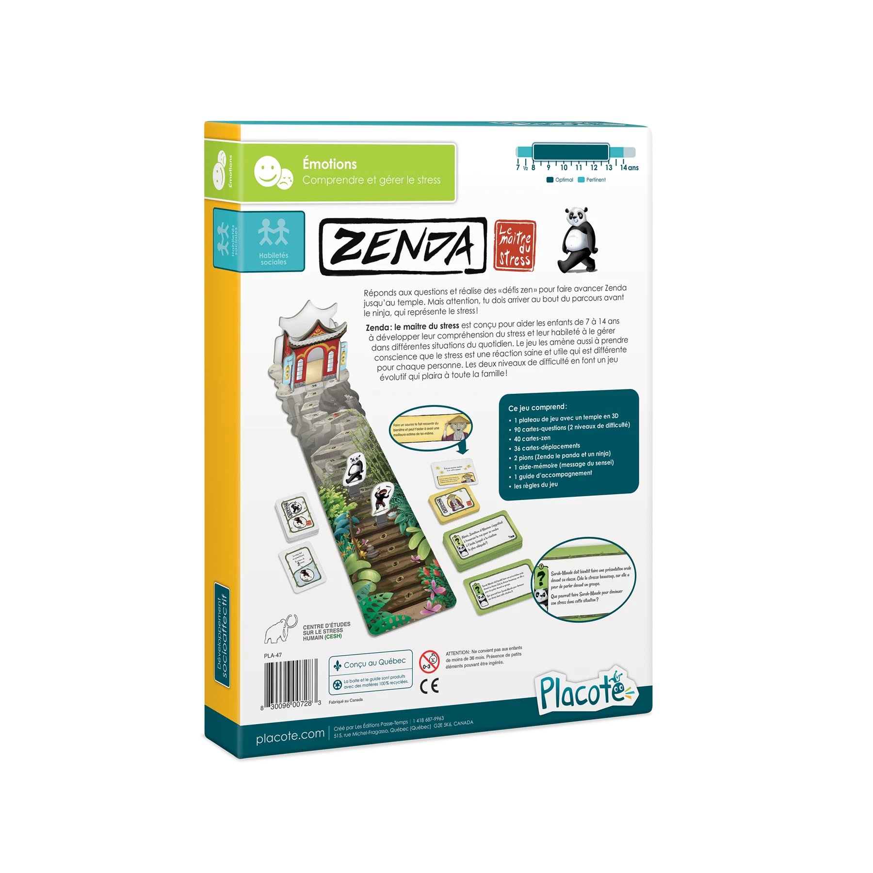 Zenda : le maître du stress a été créé pour aider les enfants à mieux comprendre le stress et à apprendre à le gérer dans différentes situations de la vie quotidienne. Ce jeu les amène également à réaliser que le stress est une réaction normale et utile, mais qu'elle peut varier d'une personne à l'autre.